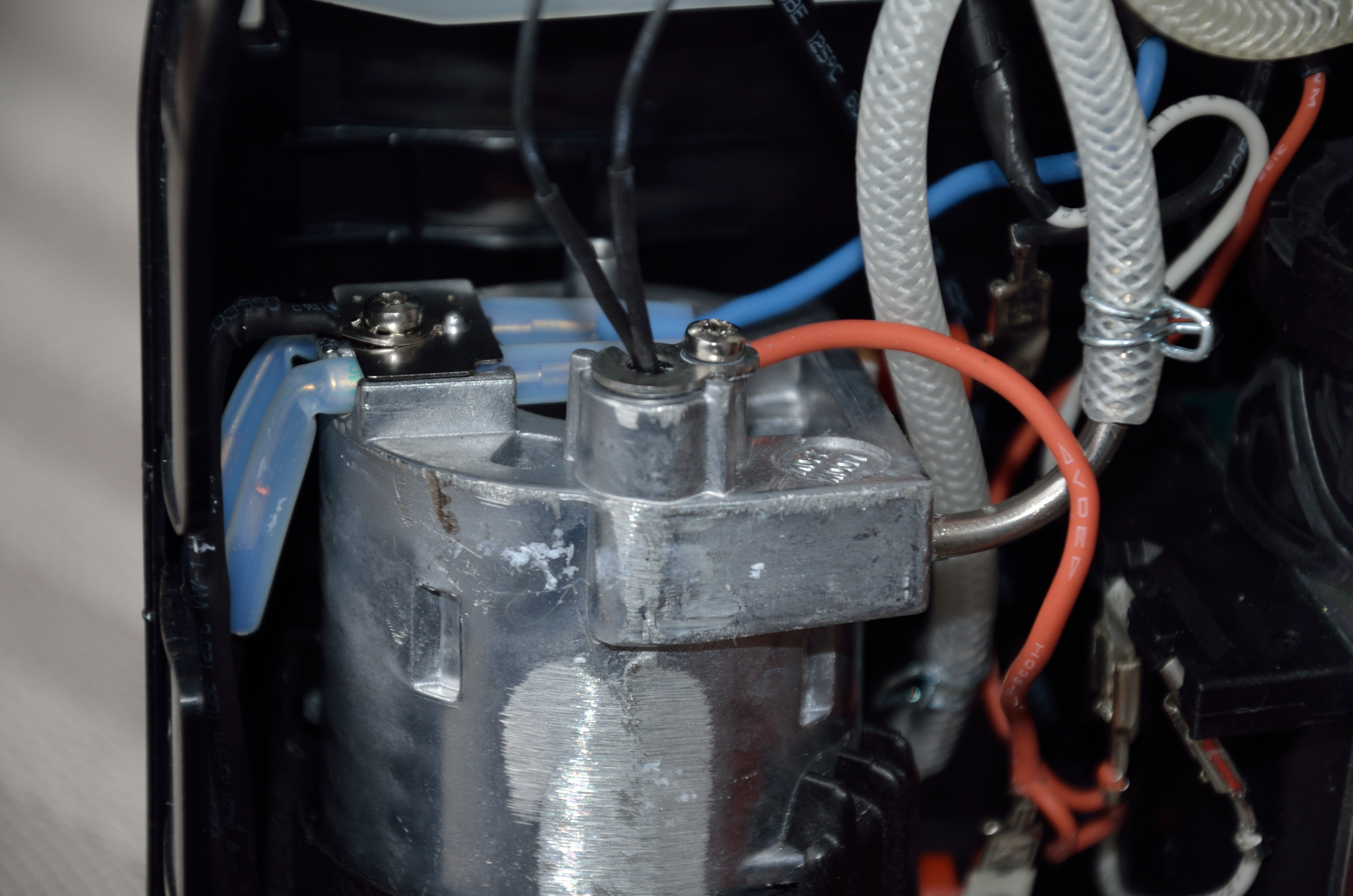 - tři vodiče (červený, černý, modrý) od páčky s ventilem,