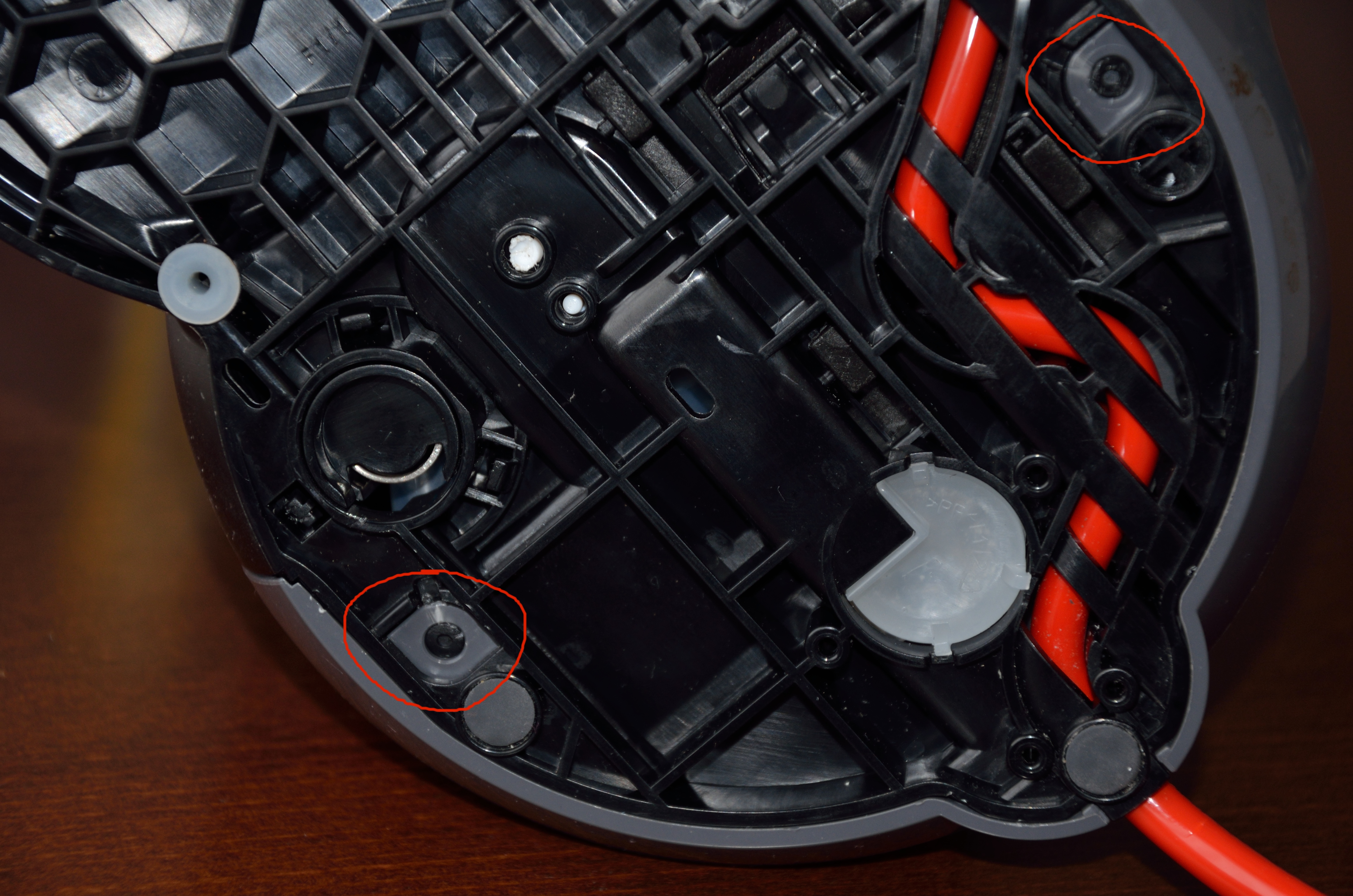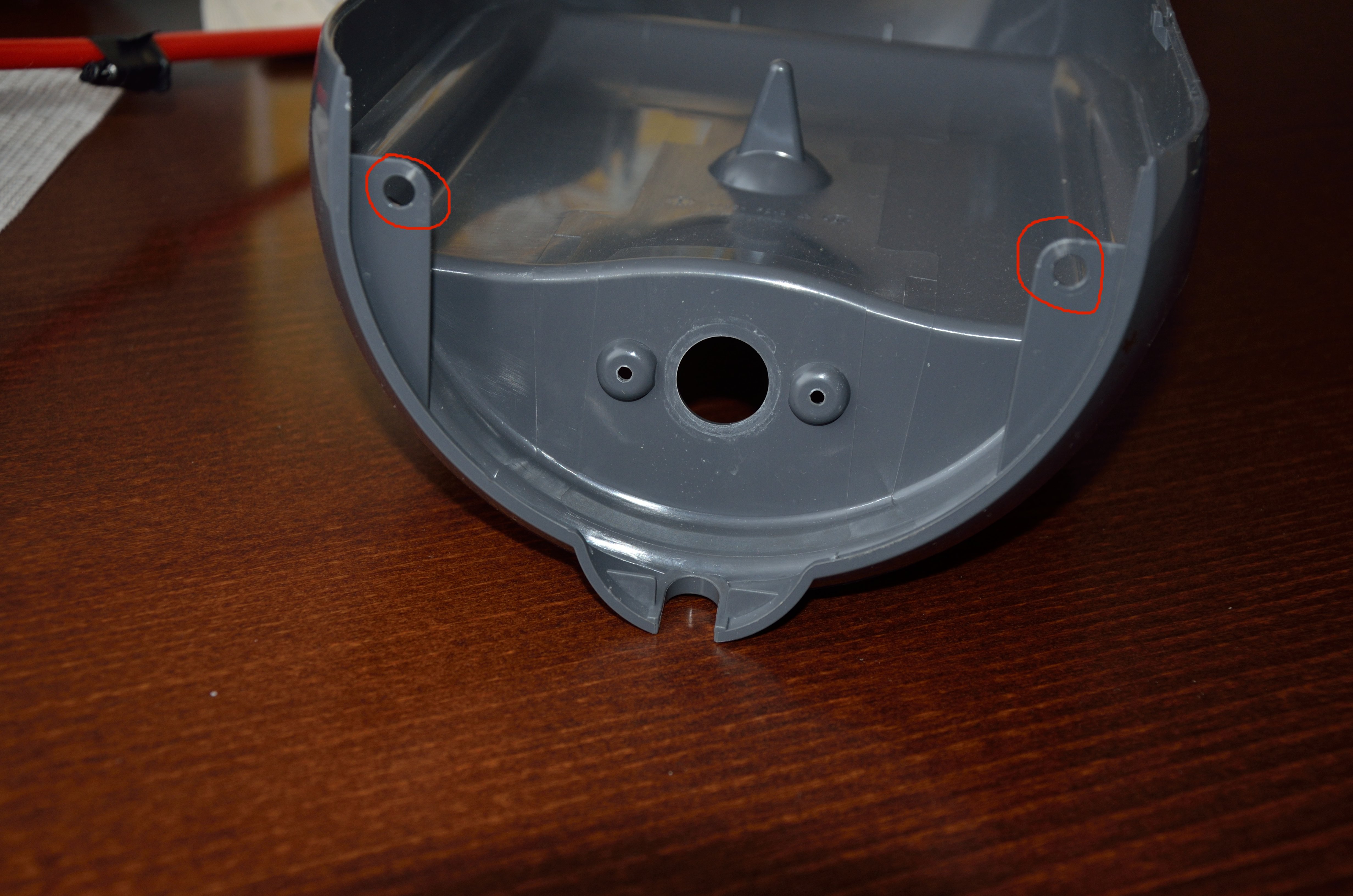 Po odstranění zásobníku vody je potřeba odšroubovat čtyři torx šroubky s bezpečnostním otvorem. Už použitím těchto speciálních šroubků výrobce naznačuje, že se brání neprofesionální manipulaci s přístrojem.