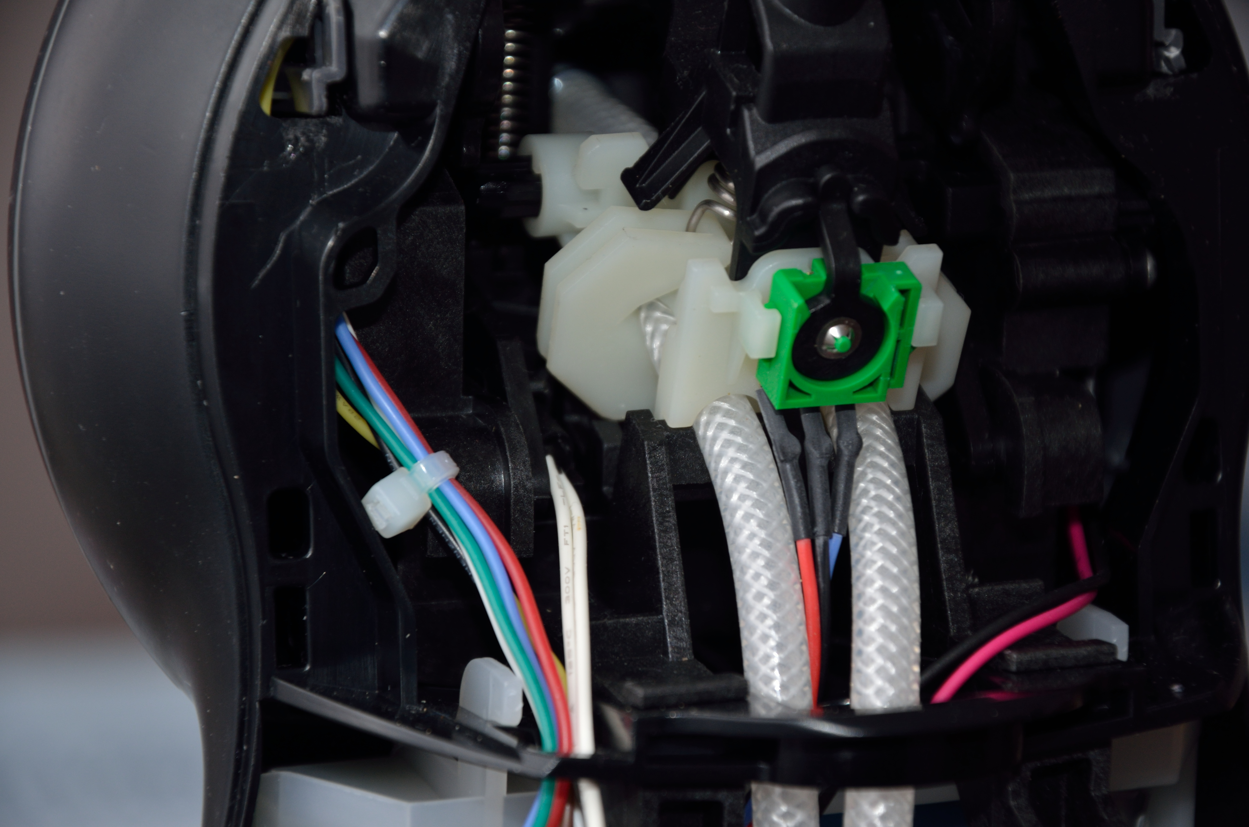 - čtyři vodiče (zelený, červený, modrý, žlutý) od tlačítka zapnutí přístroje,