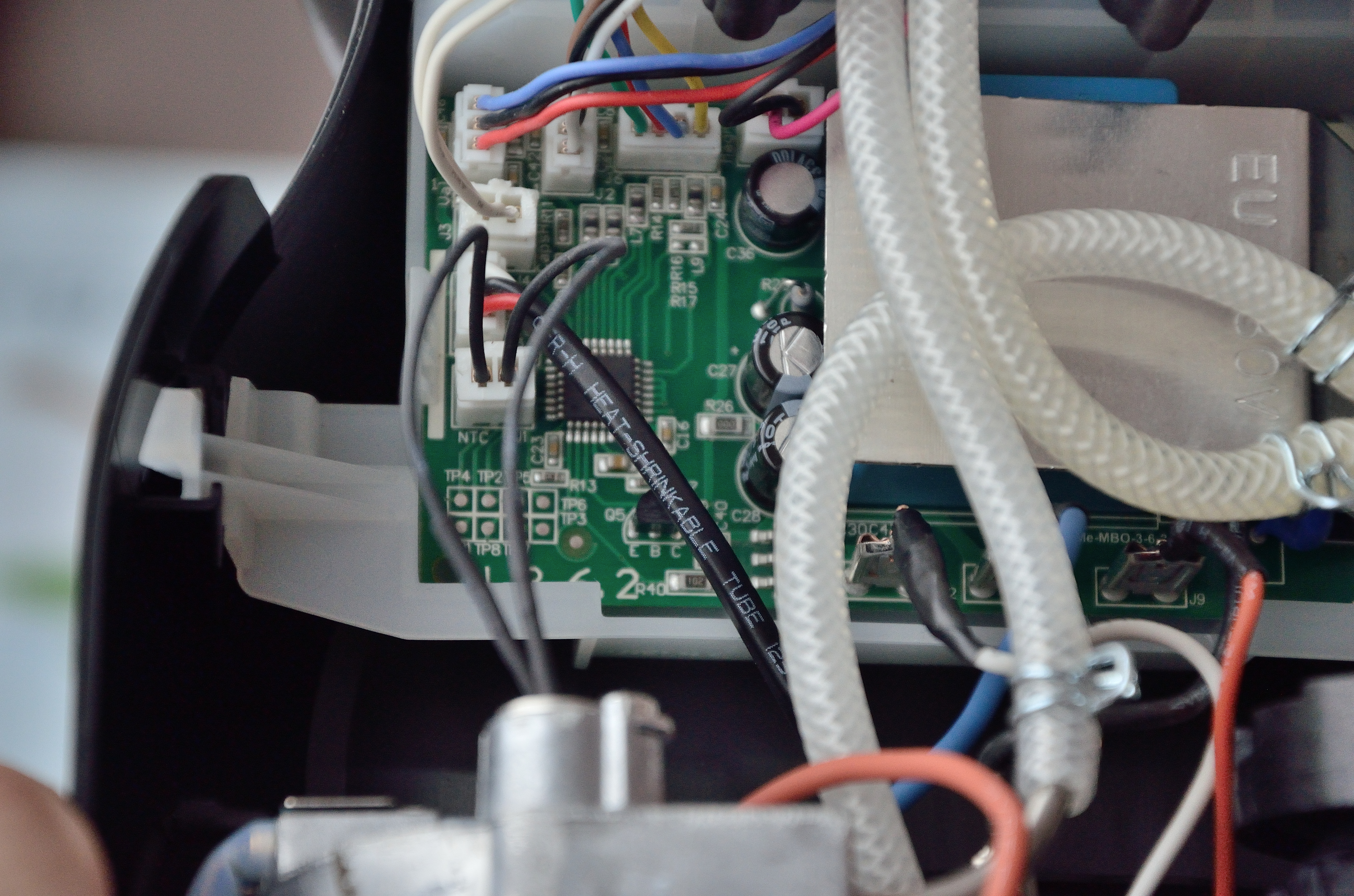 Na řídící desce jsou tři hlavní části a to: úprava napětí, spínače výstupů a řídící čip (MCU), do kterého jsou připojeny výstupy senzorů. Pro stabilizaci napětí je na desce obvod VIPER 16L - pulsně spínaný měnič napětí. Jeho správná činnost se dá otestovat změřením napětí 5V na přívodních vodičích k MCU. O MCU nemám žádné detailní informace - pravděpodobně se jedná o nějaký zákaznický obvod.