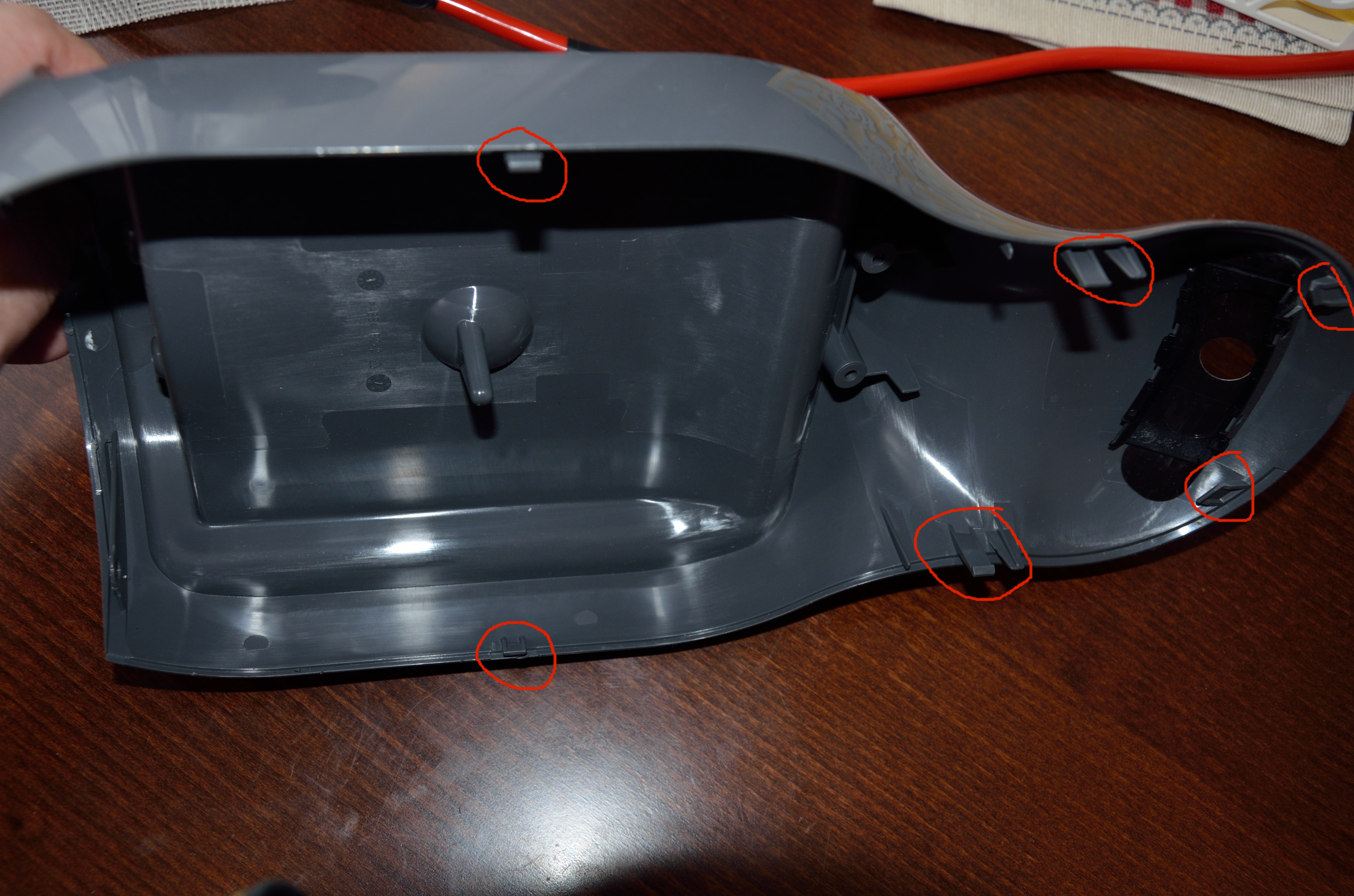 S krytem je nutné manipulovat opatrně, neboť hrozí poškození plastů a krytu. Postupně se rozpojují plastové zámky od spodní k horní části. Nakonec se kryt vyhákne z dvou plastových zámků v nejhornější části.