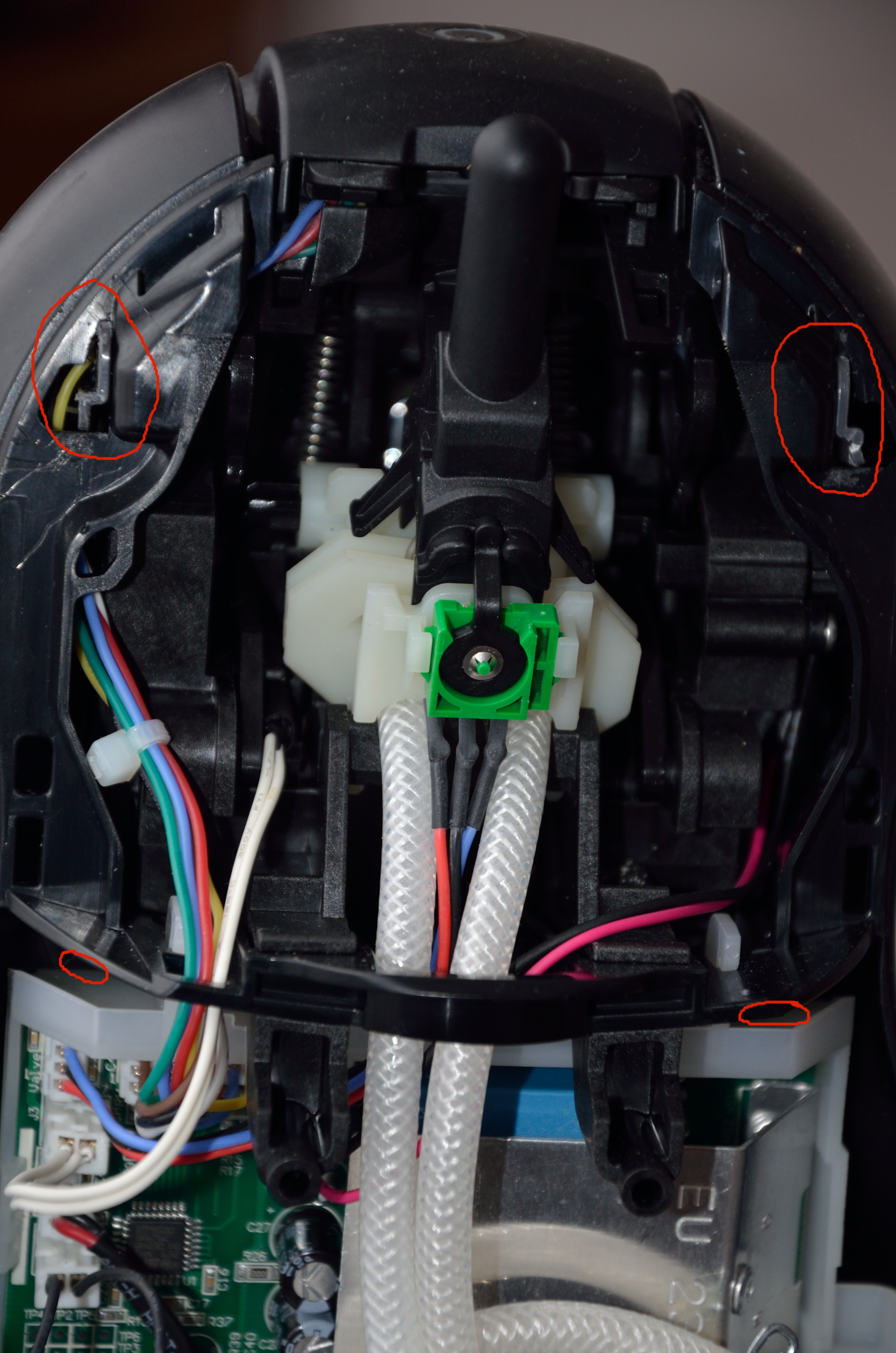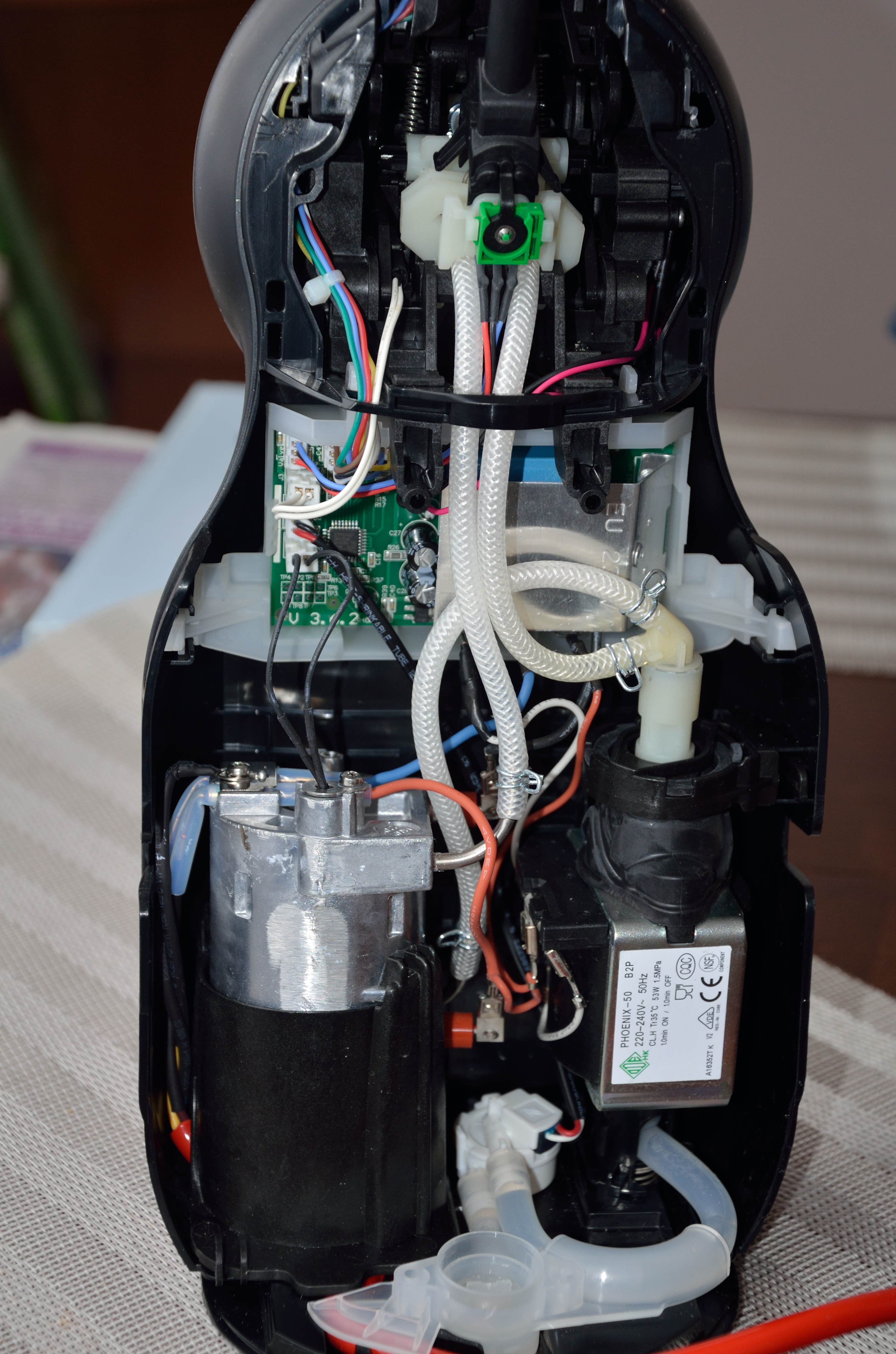 Otestování jednotlivých bodů by mělo vést k nalezení závady. V mém případě byla závada opravdu banální, ucpaná tryska, která ani nešla vyčistit zvenčí. Přístroj se musel celý rozebrat, aby se k trysce dalo dostat z vnitřní strany. Ucpání trysky bylo signalizováno rychlým blikáním červené kontrolky, protože prvně, po sepnutí čerpadla, senzor průtoku oznámil neprůchodnost systému a následně se i nadlimitně zvýšila teplota topného tělesa, tedy v následujících pokusech čerpadlo už ani nespínalo, dokud nedošlo k razantnímu ochlazení topného tělesa. A to vydrží být opravdu dlouho horké.