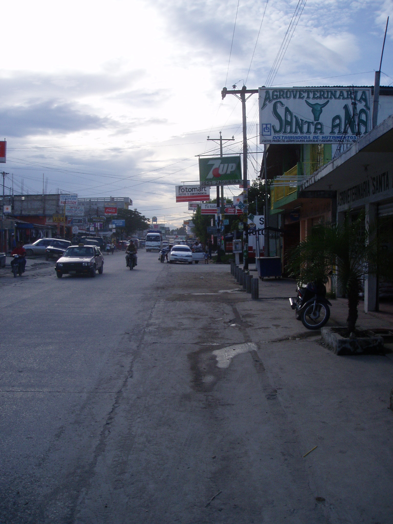 Na hranicích jsme vyměnili zbylé Q za pesos v obstojném kurzu. Po obídku okolo ¾ na 1 jsme prošli guatemalskou hranicí bez větších problémů a odevzdali jsme taky doklad, který nám dali, když jsme vstoupili na území Guatemaly. Mexická strana hranice byla však o 4 km dále, no pěšky se nám v tom vedru nechtělo, takže jsme využili služeb taxikářů (25p/3os).