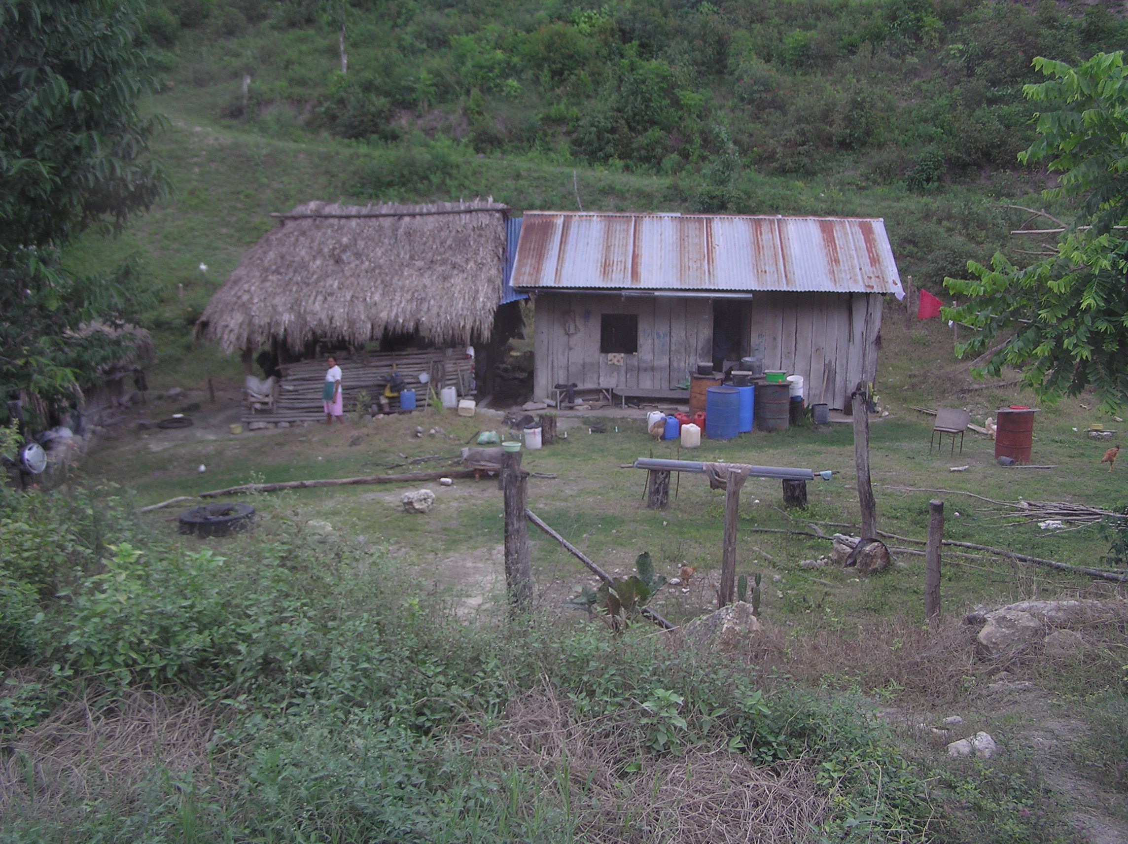 Na guatemalské straně hranic už na nás čekala skupina místních veksláků. Nabízeli kurz US:Quetzal 1:7, což jak jsme později zjistili v bance, nebylo zrovna výhodné, protože banka cca o 150 km dále měla kurz o něco lepší. Já si měnil jen 20 dolarů, kluci o něco víc. Silnice, která měla pokračovat za hranicemi se silnicí fakt nedá nazvat, protože to byla jen uježděná hlína a písek, často s vymletými dírami. Po hodině skákání na sedačkách se konečně objevila asfaltka. To si pak člověk dokáže vážit pohodlné cesty po asfaltu. Cestou byli občas vidět usedlosti, ve kterých žili chudí vesničané v rozpadajících se chaloupkách.