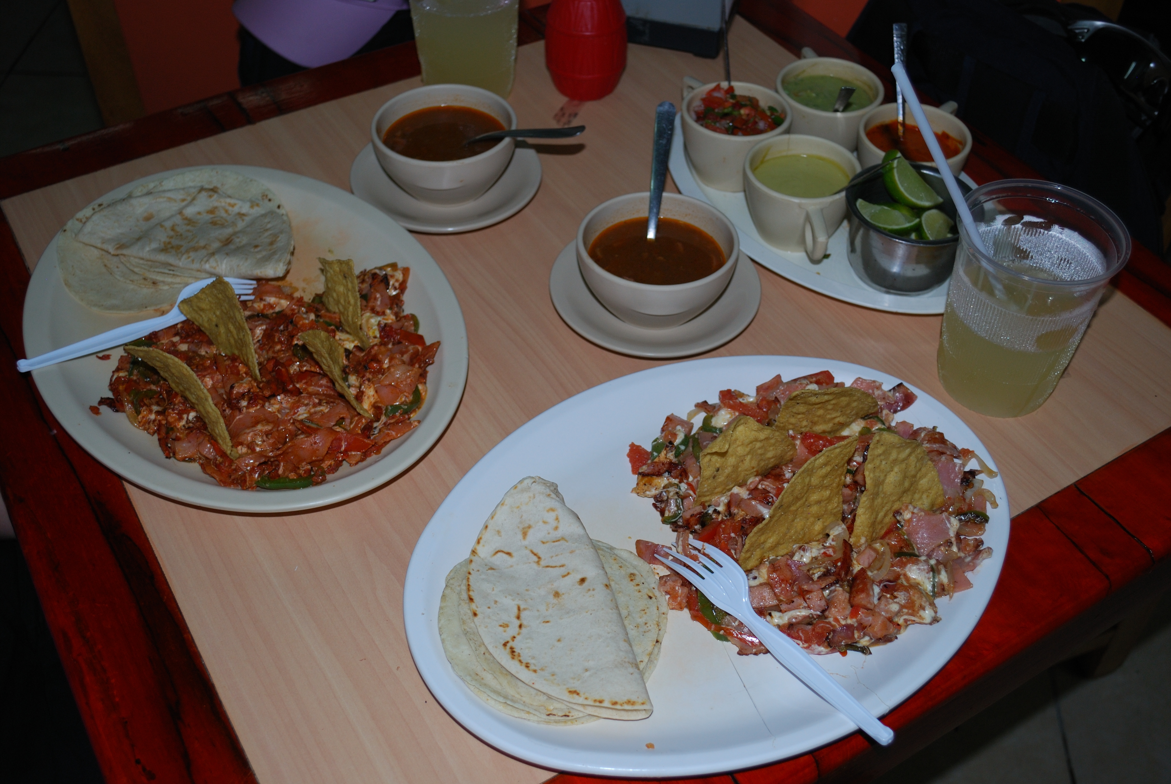 Večeři jsme si dali v jedné restauraci, která byla hojně navštěvována domorodci a to výbornou pikantní směs s uzeninou, sýrem, rajčaty a tortillas. Snad nám po tom nebude špatně v nočním autobuse.