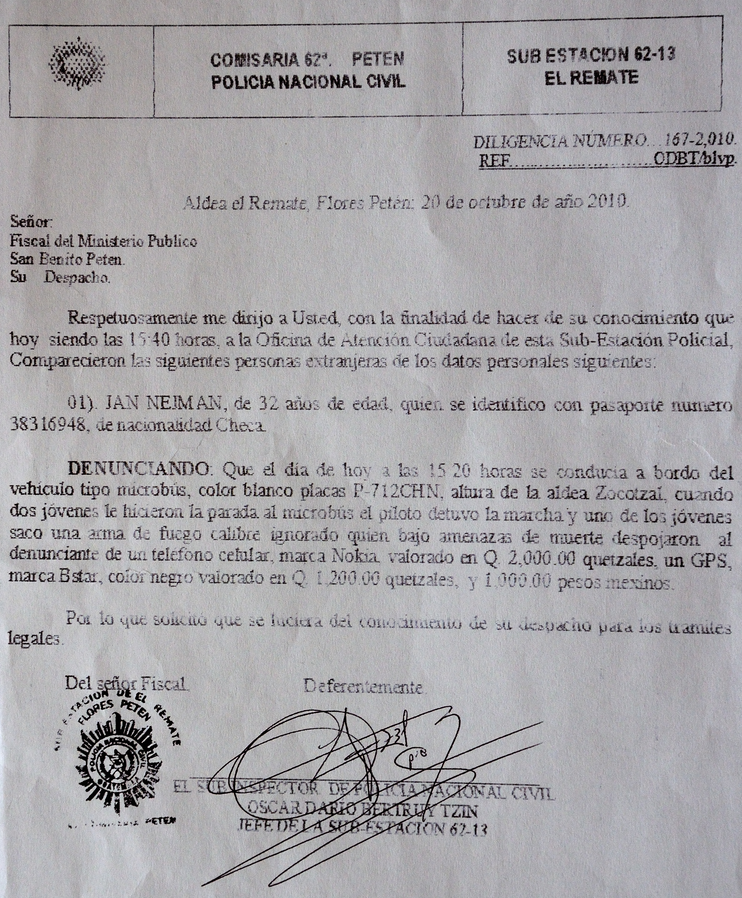 Zakřičeli jen: "el dinero, dinero" a "celular", tedy penízky a mobily. Žena ještě spala, tak jsem ji vcelku s klidem budil, že nás přepadli, ať se vzbudí. To probuzení muselo být strašné, člověk neví, jestli se mu zdá špatný sen nebo je to realita.