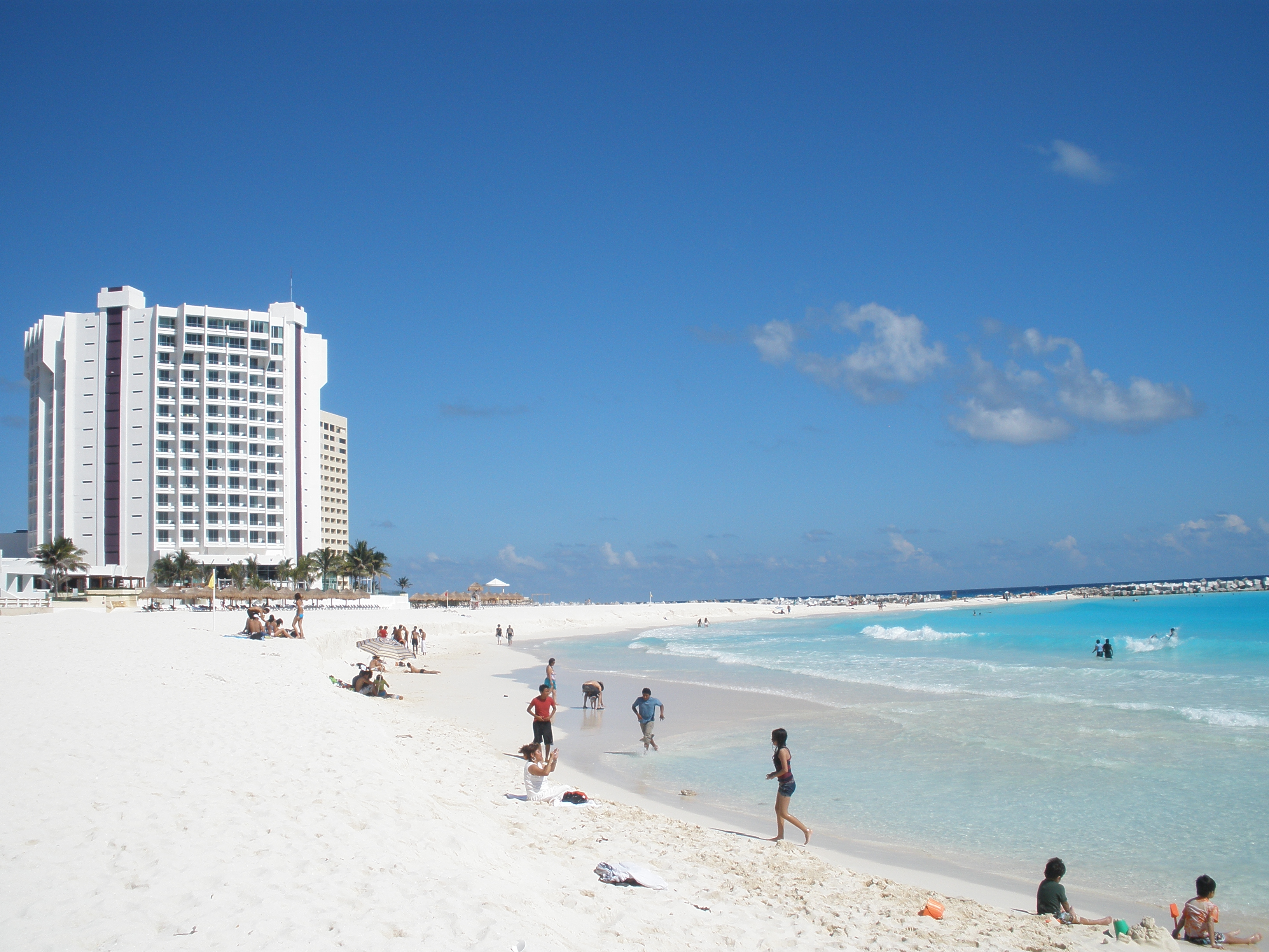 Po snídani jsme využili místní autobusovou dopravu a nechali se dovést asi 2.5 kilometru k pláži Playa Gaviota Azul, která leží v samém cípu Zona Hotelera. Moře je v této části opravdu azurové a horké jak kafe.
