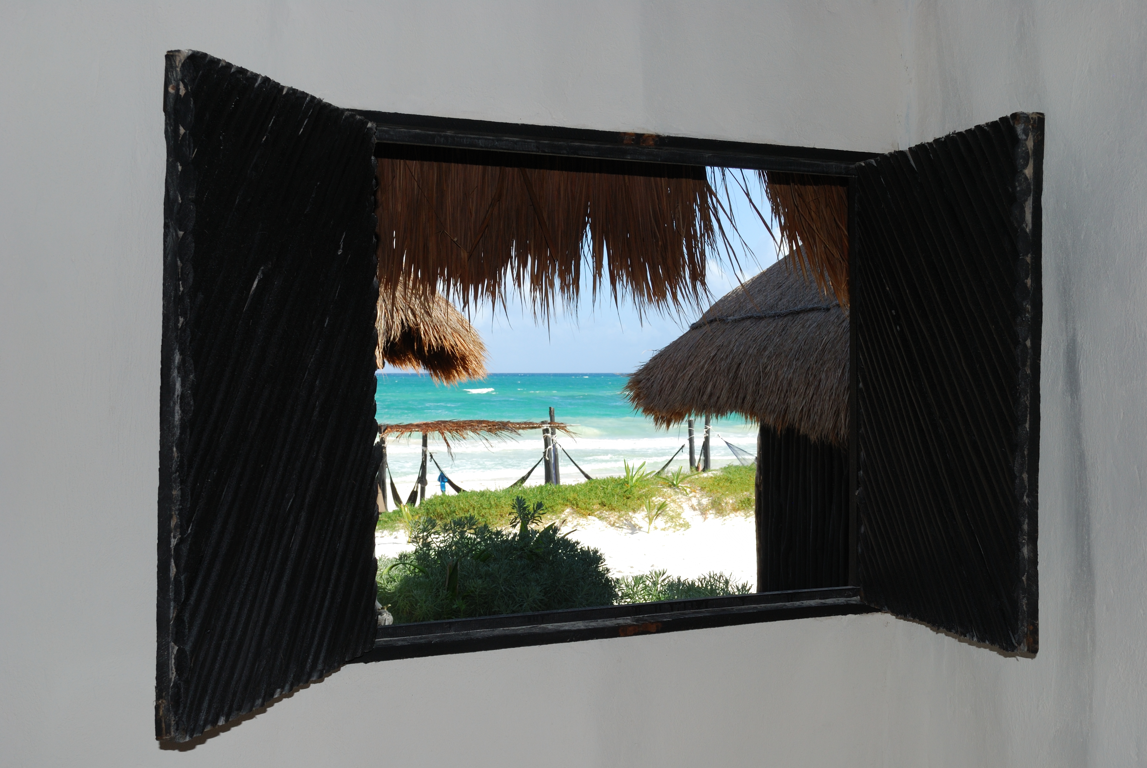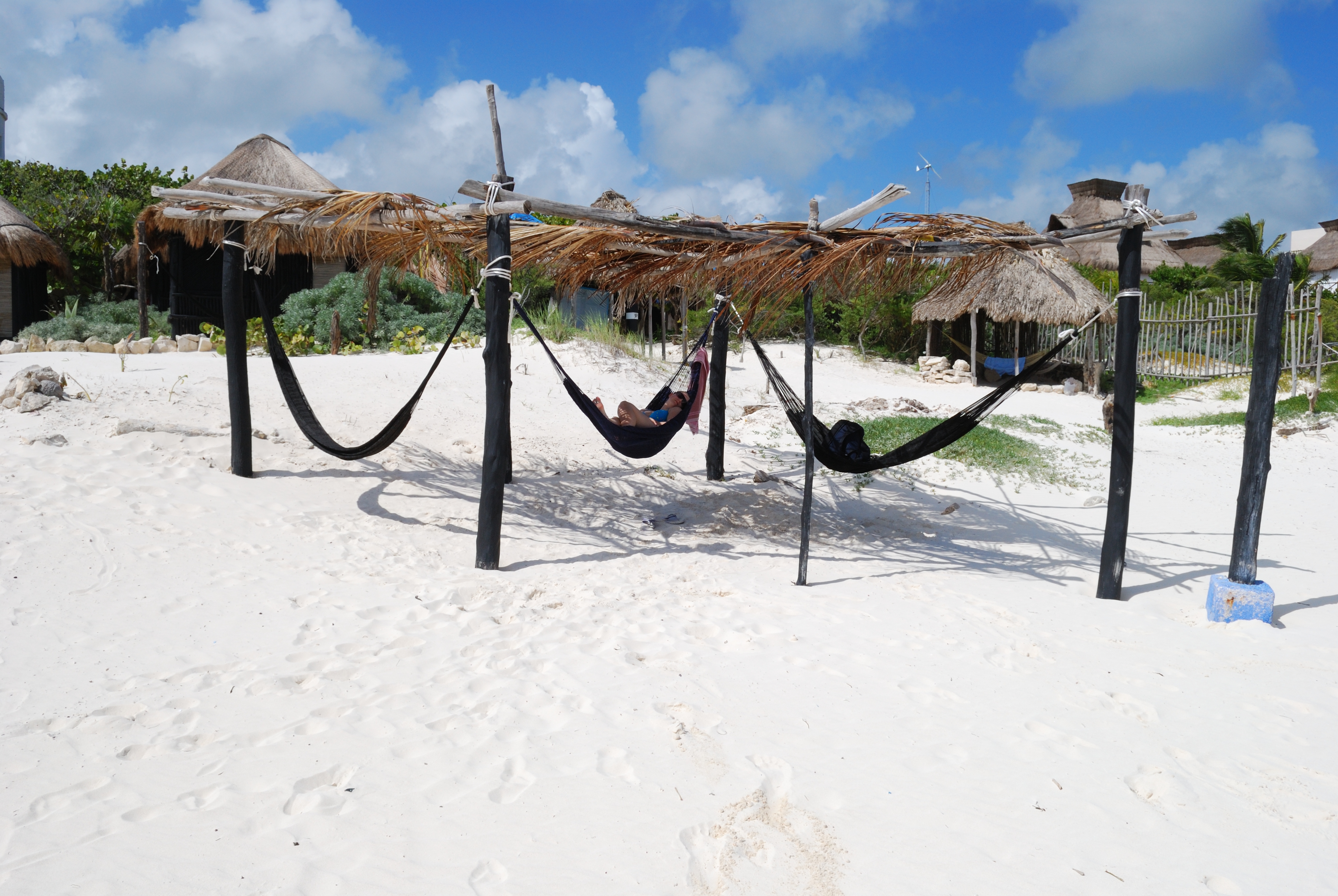 Rovnou před autobusovým nádražím v Tulumu jsme si vzali taxi k ubytování Coco Tulum - Cabañas, které je přímo na pláži. Už jsme tam měli hotovou rezervaci z předchozích dnů, takže nás recepční rovnou ubytoval.