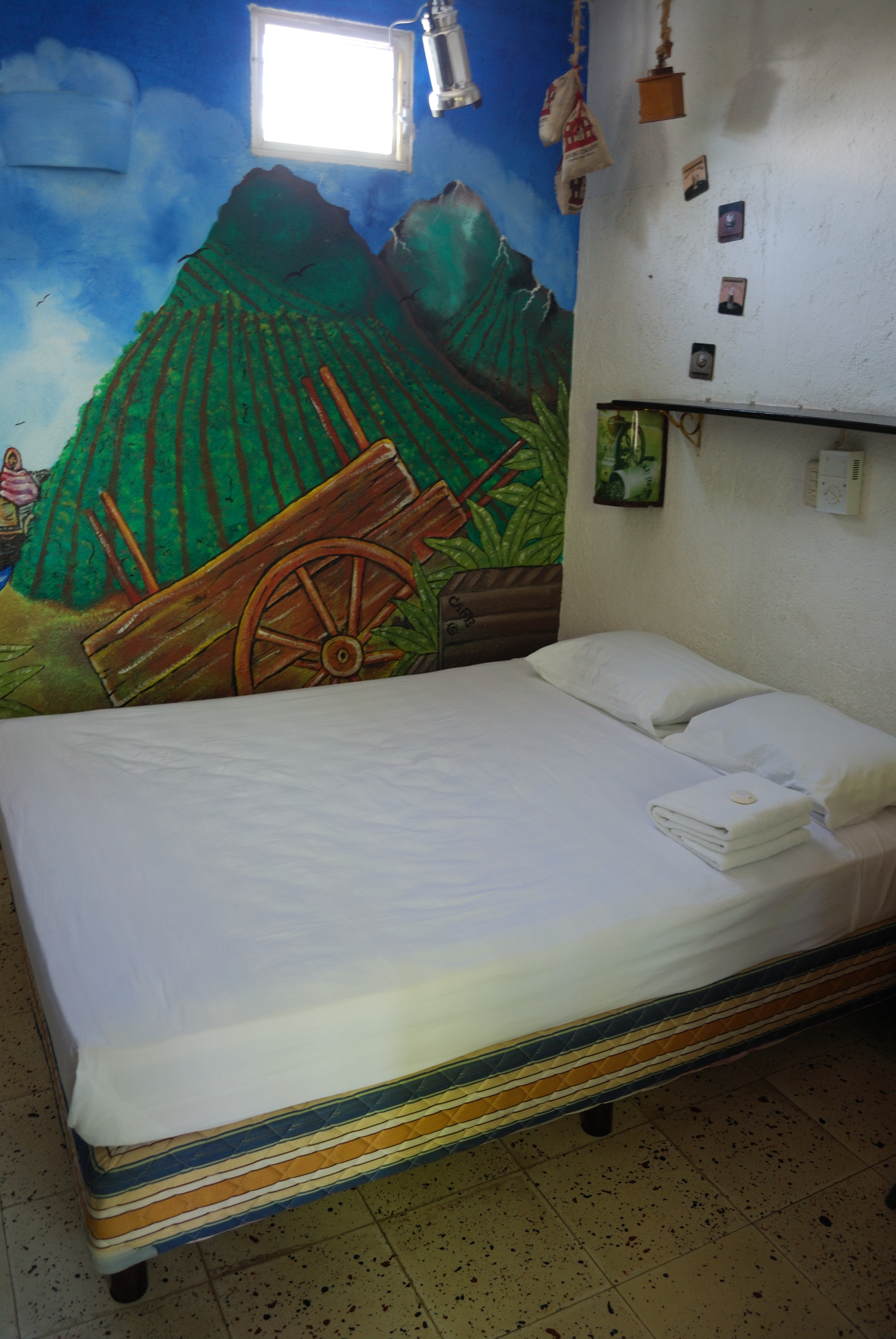 Zase až tak obyčejný pokoj to nebyl, protože každý pokoj v hotelu byl upraven v jiném stylu na motivy díla Fridy Kahlo. My jsme měli pokoj v kávovém stylu. Na stěnách byly malby z kávových plantáží a ze stropu visely na lanech kafe mlýnky a sáčky se zrnkovou kávou.