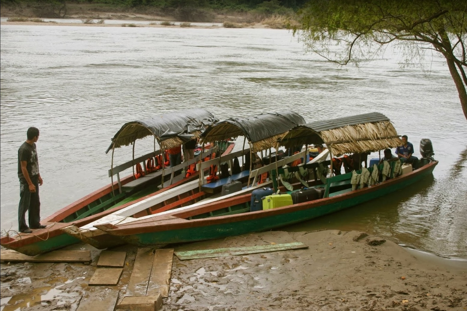 Celníci nám za poplatek vystavili kartu „doble entrada“ (dvojí vstup), abychom se mohli pak vrátit zpět do Mexika, po následující Guatemale. Batohy jsme si položili před, asi 10 metrů dlouhý, motorový člun s krytou kajutou pro pasažéry a čekali na naše nalodění.
