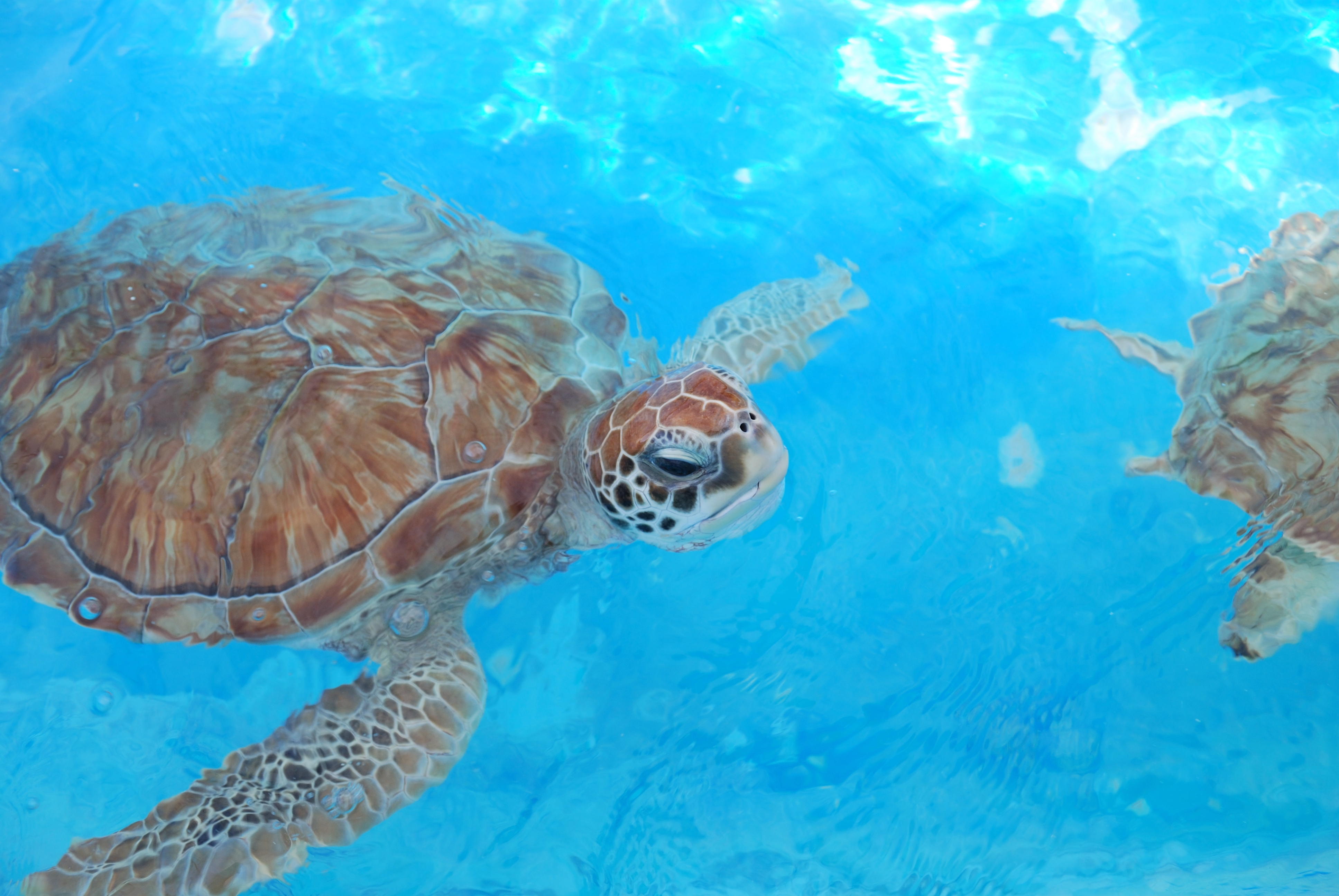 Jednotlivá vývojová stádia želvy pak odpovídají bazénu, ve kterém zrovna jsou. Tedy od těch nejmenších (5 centimetrových) želviček až po 40 centimetrové kusy. Po dovršení určitého věku je pak z farmy vypouští do volného moře. Starají se i o zraněné želvy, takže v těch největších bazénech měli až 80 centimetrů dlouhé želvy. Pro ty si mohou návštěvníci koupit krmení a pozorovat je při "lovu" potravy.