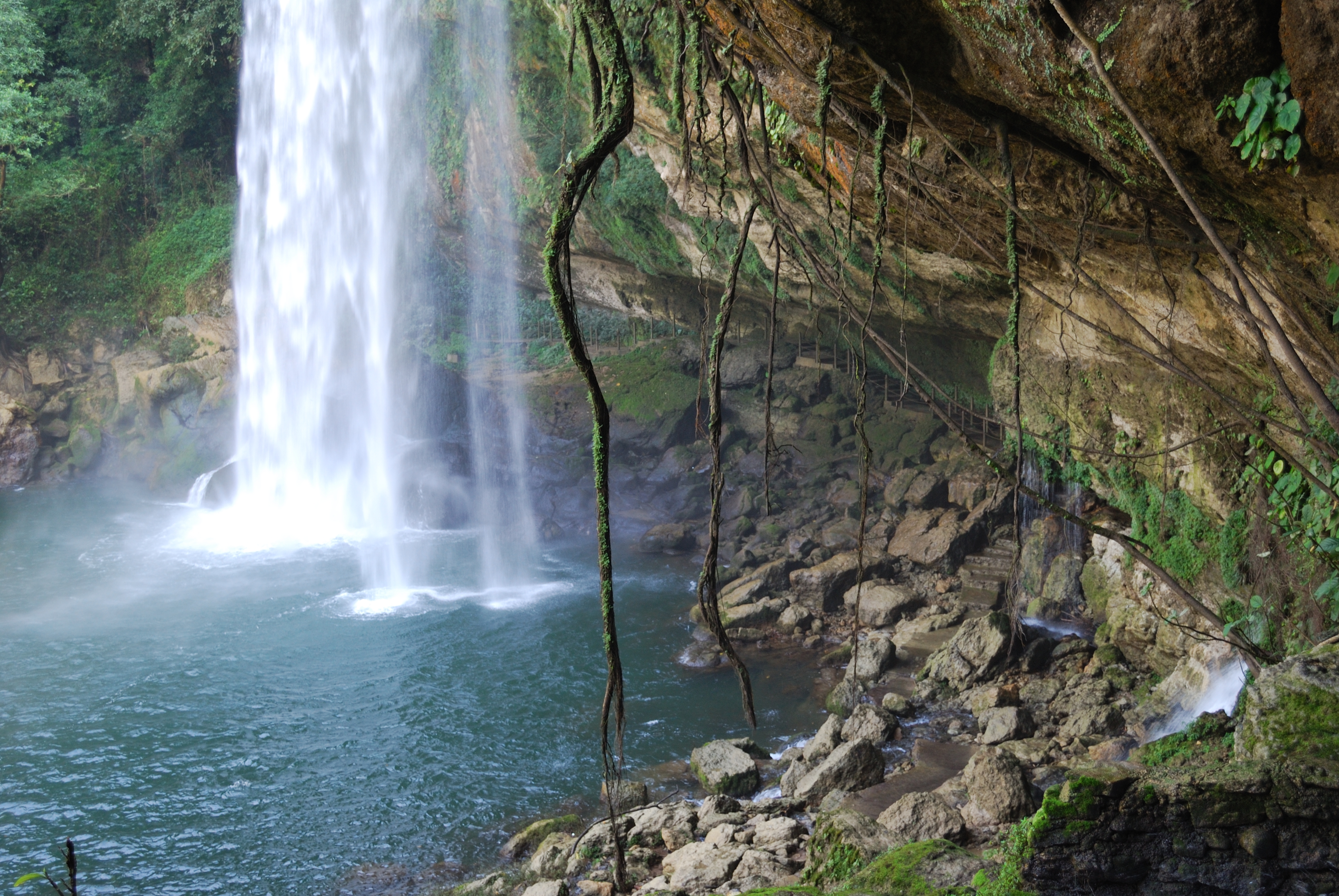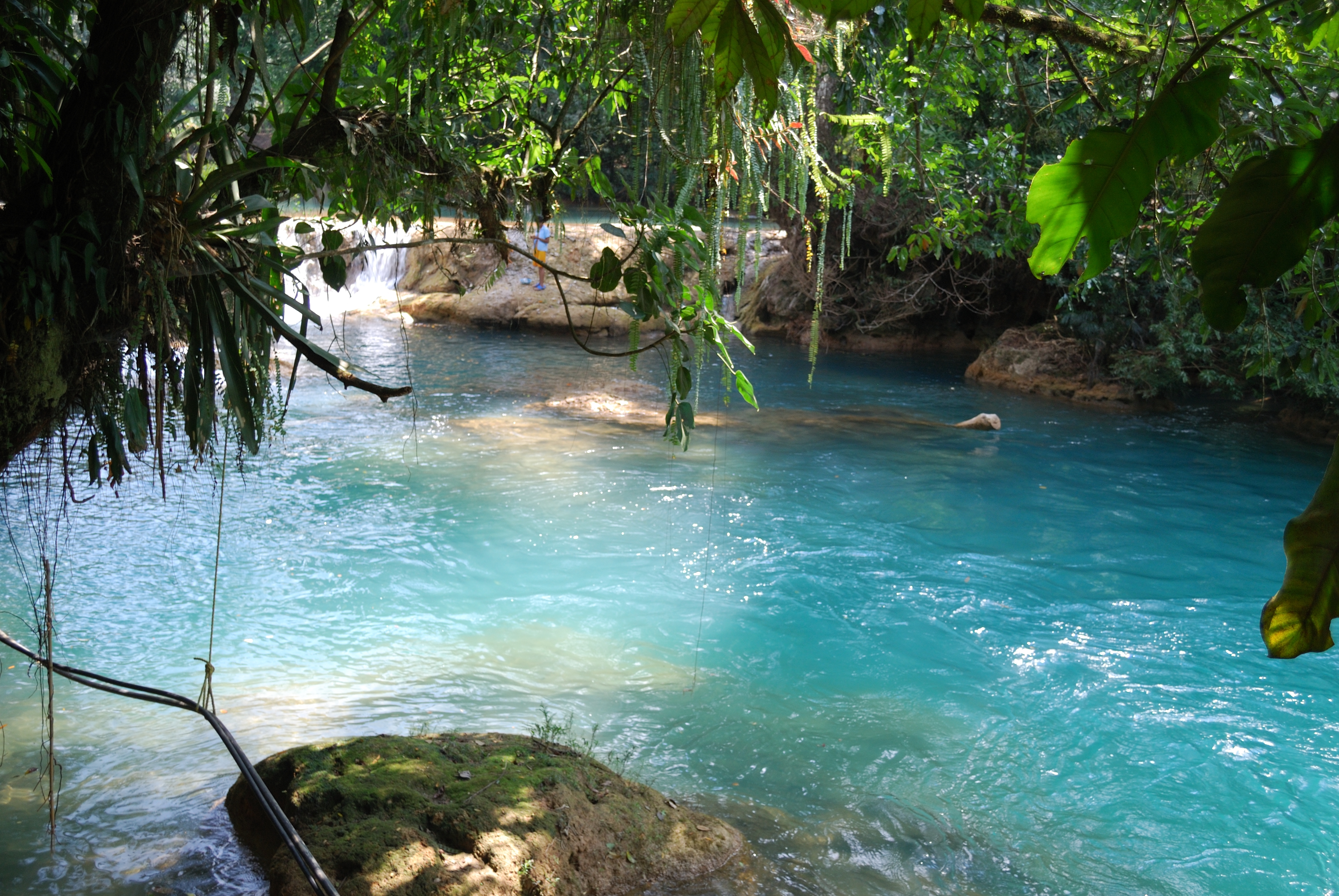 Celý vodopád jsme si prohlédli za ¾ hodiny a pokračovali dále 40 kilometrů po silnici, až ke kaskádám Agua Azul.